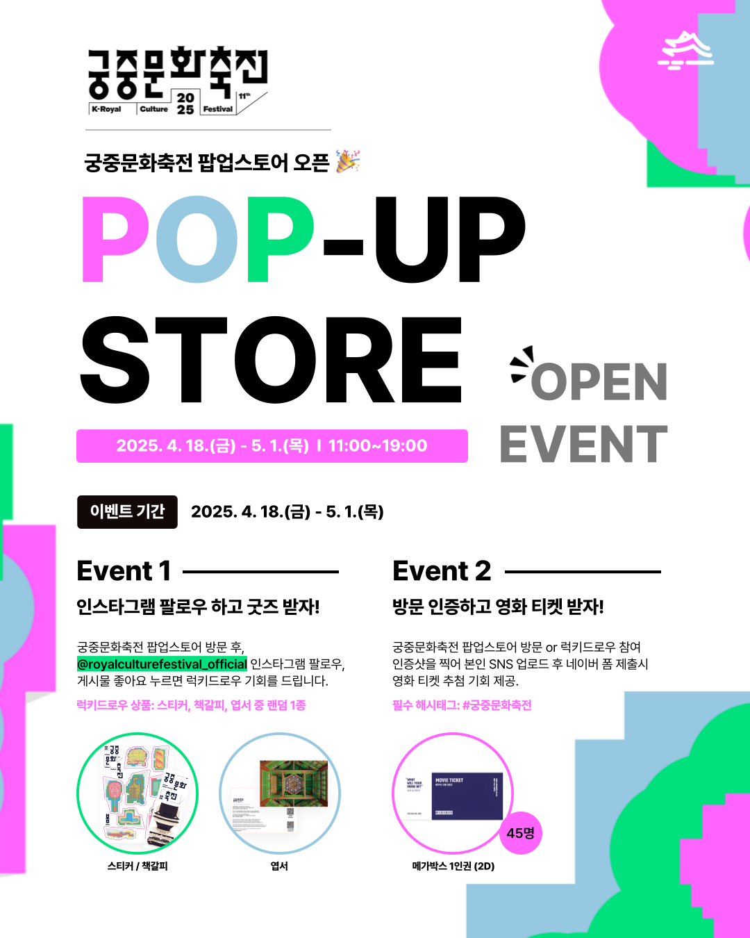 - 인증샷 챌린지: #궁중문화축전 #성수팝업 해시태그 등록 시 경품 추첨