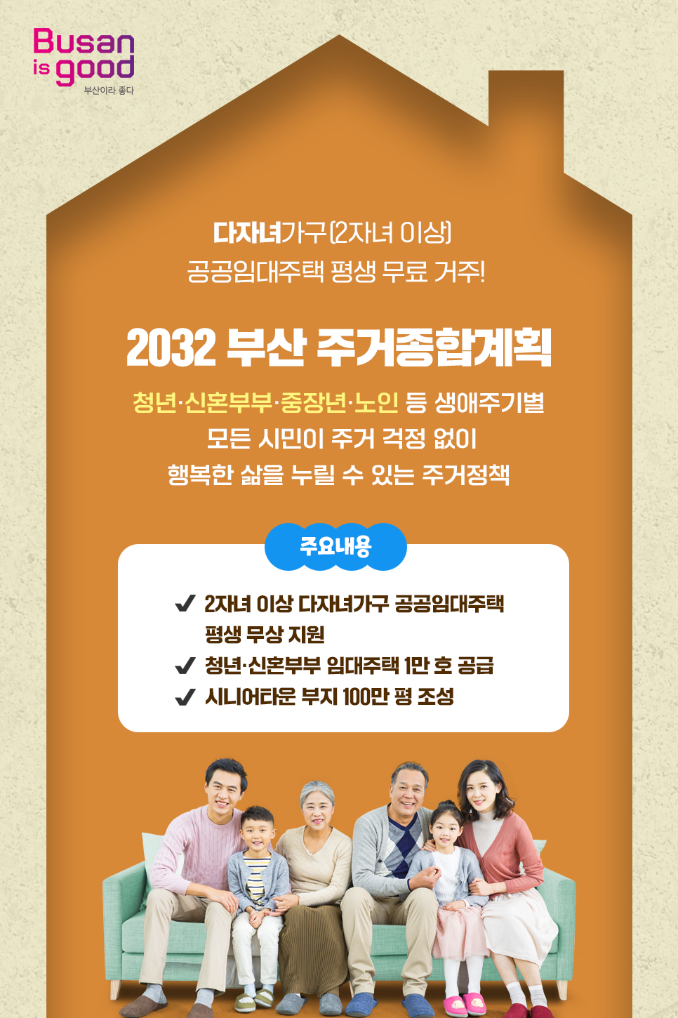 부산시는 전국 최초로 2자녀 이상 가정에 ‘평생 무료주택’을 제공하는 파격적인 정책을 시행합니다. 이 정책은 '청년 정착'과 ‘출산 장려’를 동시에 해결하려는 전략입니다.