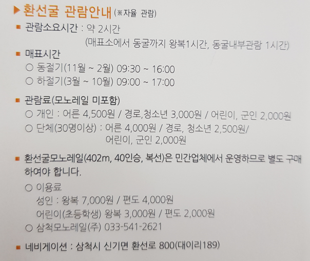 - 준비물: 손전등, 물, 간식 준비 (동굴 내 판매점 없음)