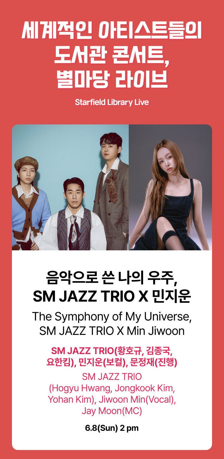 매주 일요일마다 펼쳐지는 별마당 도서관의 음악 축제! 클래식부터 재즈까지 다양한 장르의 최정상급 뮤지션들이 선사하는 특별한 공연을 만나보세요.