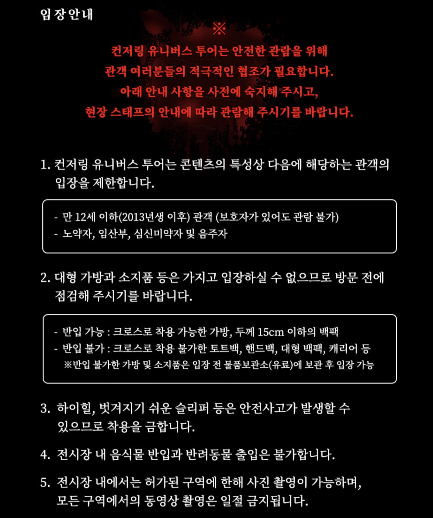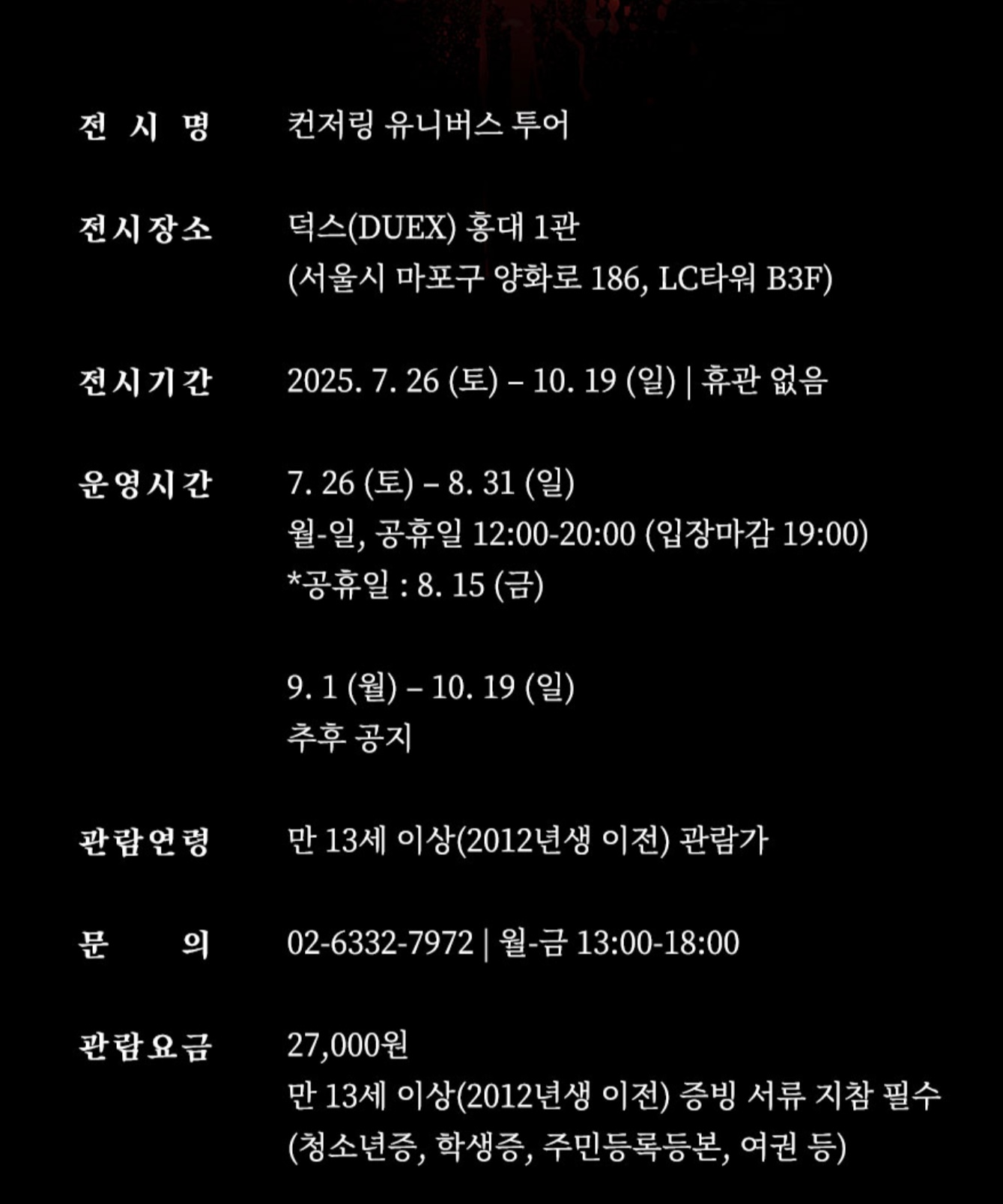 이 전시는 단순한 ‘호러’가 아닌, 스토리와 분위기로 완성되는 ’시네마틱 체험’입니다. 컨저링 세계관의 팬이라면 물론, 짜릿한 공포를 즐기고 싶은 분들 모두에게 완벽한 선택이 될 것입니다. 이번 여름, 오싹하고 특별한 시간을 원한다면 지금 바로 홍대로 향해보세요.