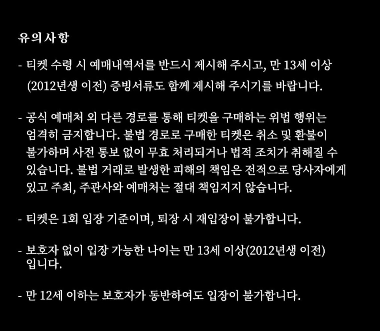 | 일반 입장권 | 27,000원 | 20,000 (30% 할인) | 90분 |