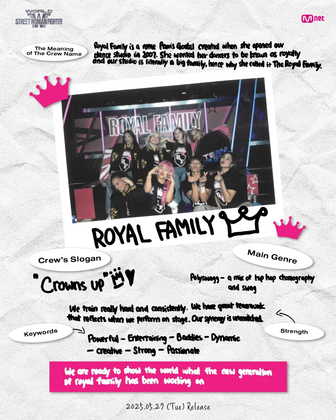 로얄 패밀리의 1세대 멤버들이 주축이 되어 결성된 팀으로, 힙합, 댄스홀, 아프로 등 다양한 장르를 소화하는 올라운더 크루입니다.