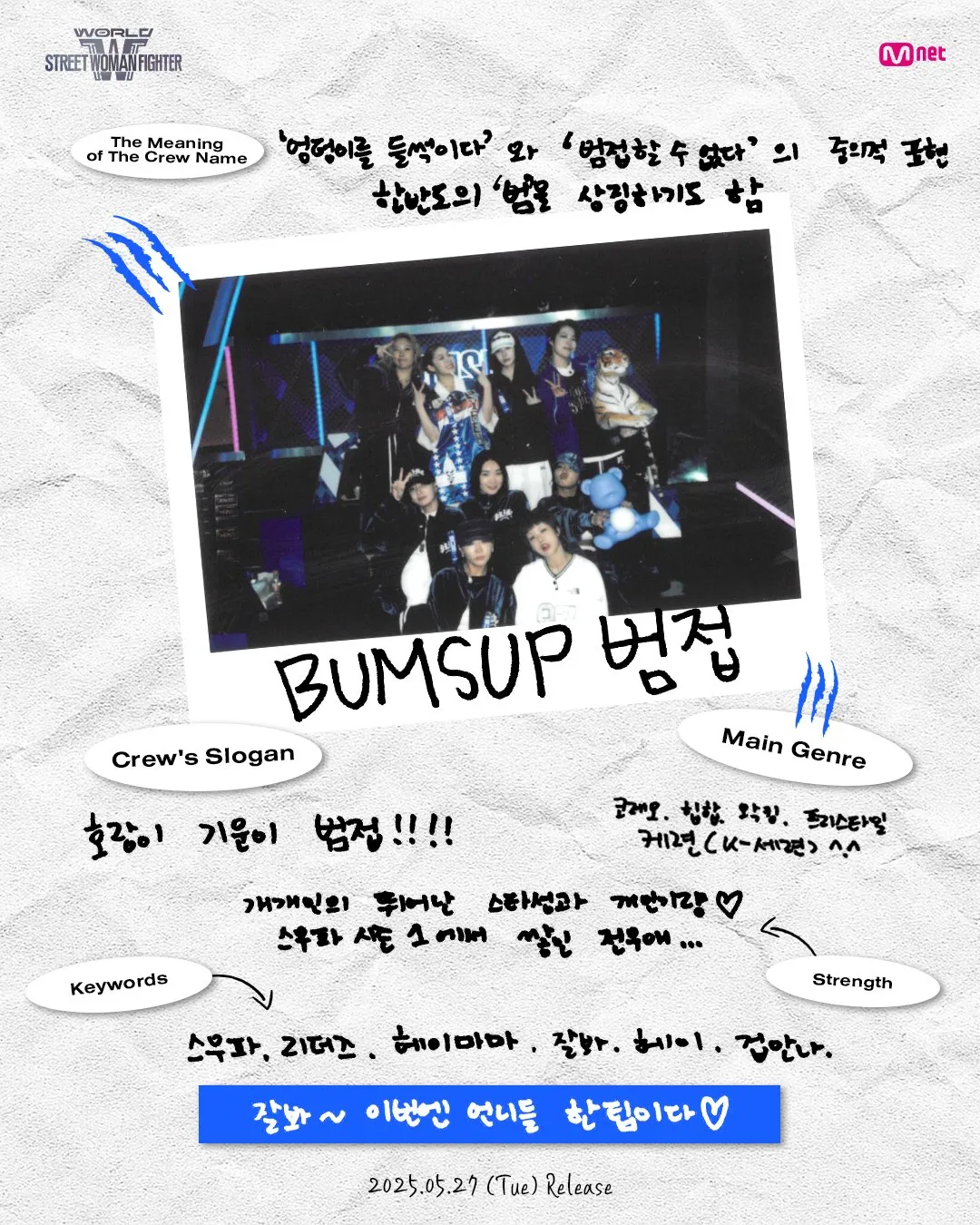 ‘스트릿 우먼 파이터’ 시즌1의 리더들이 모여 결성된 어벤저스 팀입니다. 왁킹의 전설 립제이까지 합류하여 더욱 강력한 시너지를 발휘하고 있습니다.