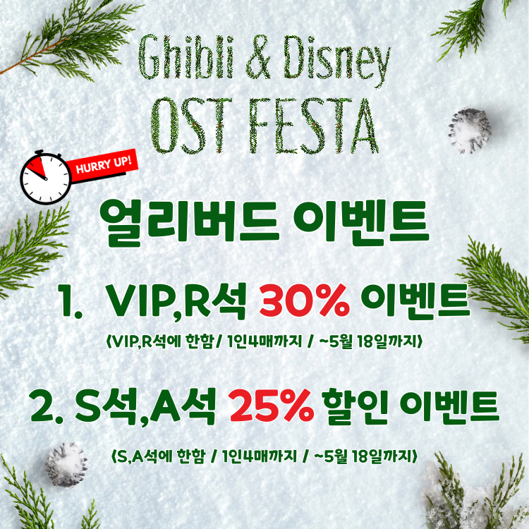 얼리버드 30% 할인 (VIP석, R석에 한해 1인 4매까지 / ~5.18(일)까지 예매 시 적용 / 할인 기간 이후 예매, 좌석 변경 불가 / 부분취소 불가)