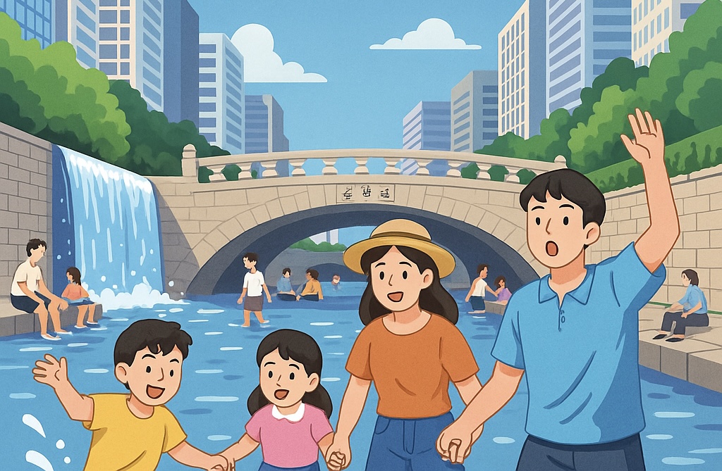 - 장소: 청계천 상류 구간(청계폭포~광통교), 20년 만에 시민 물놀이 구역 오픈!