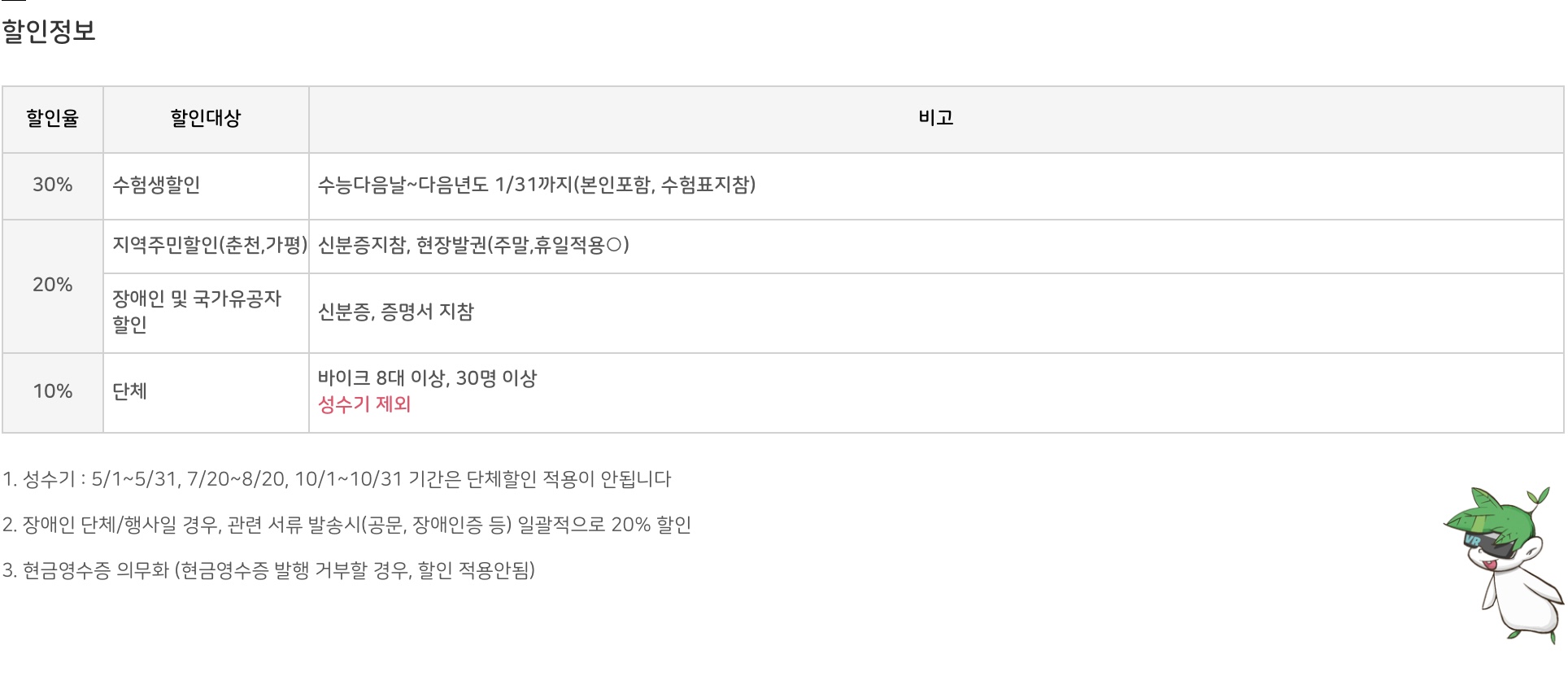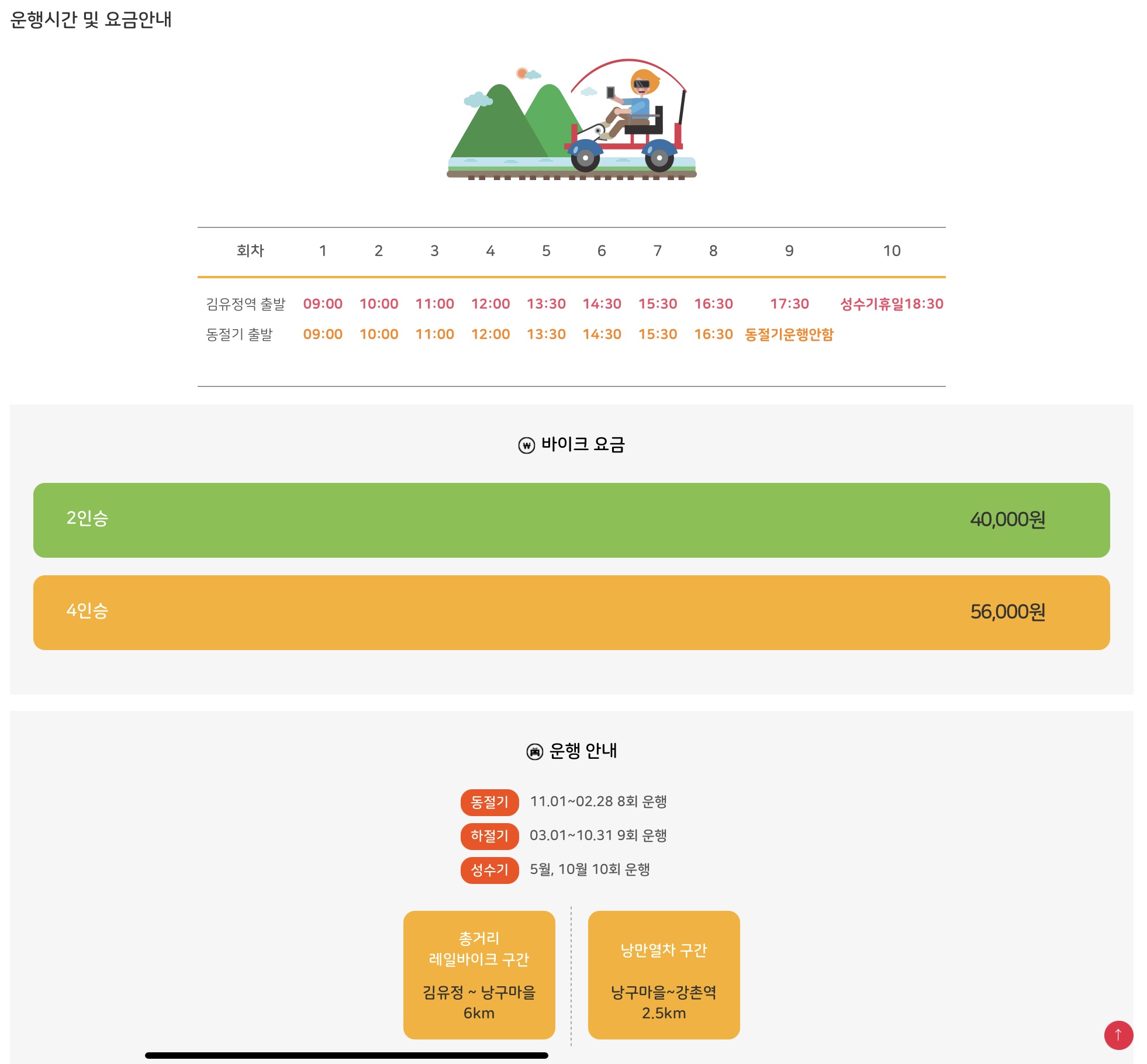 💰 김유정 레일바이크 운행시간 및 이용 요금