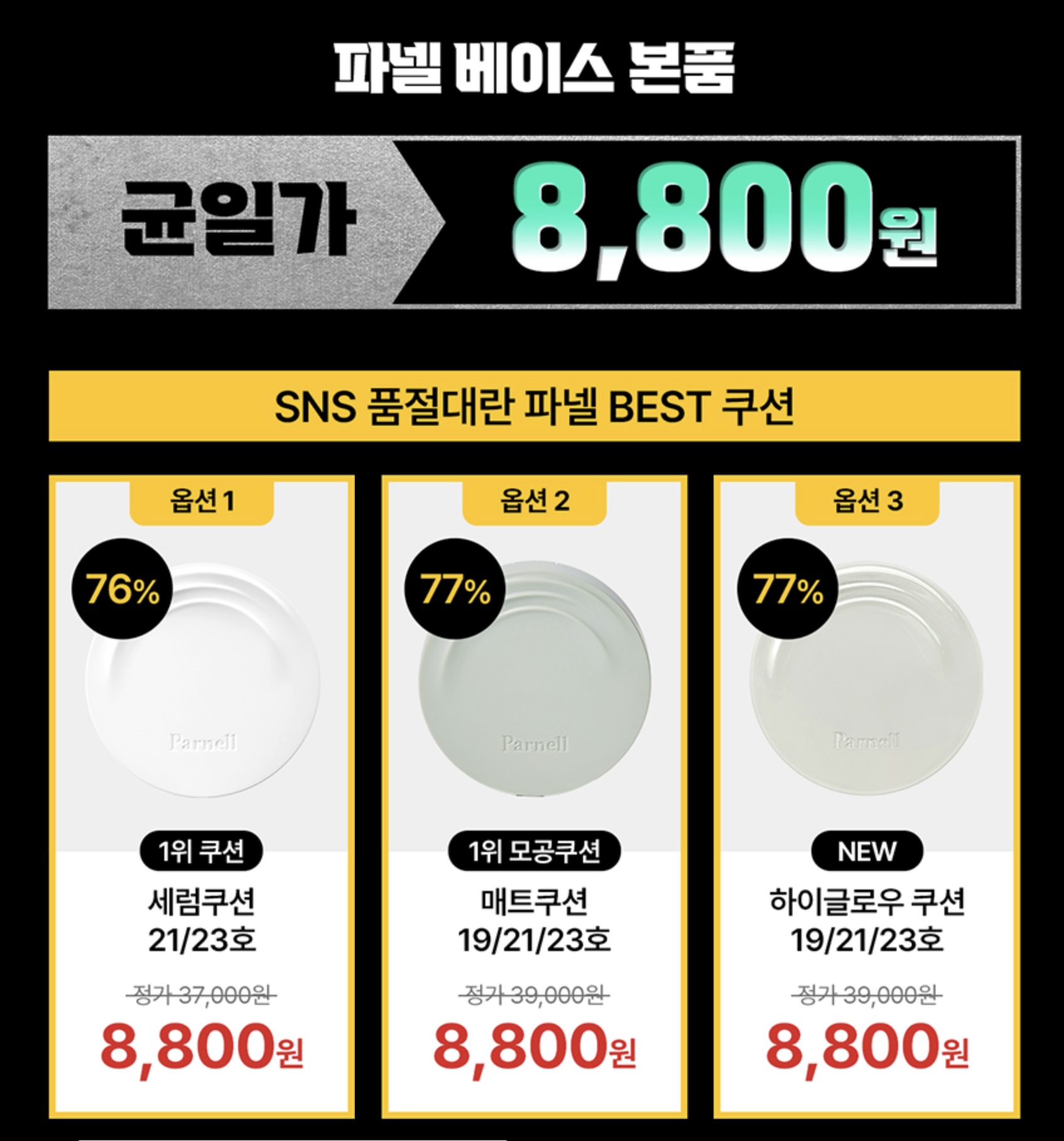 | 파넬 베이스 쿠션 | 39,000원 | 8,800원 |