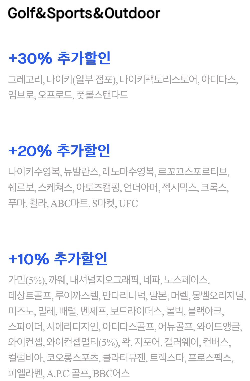 - 언더아머: 전 품목 20% 추가 할인 (5.30~6.8)
