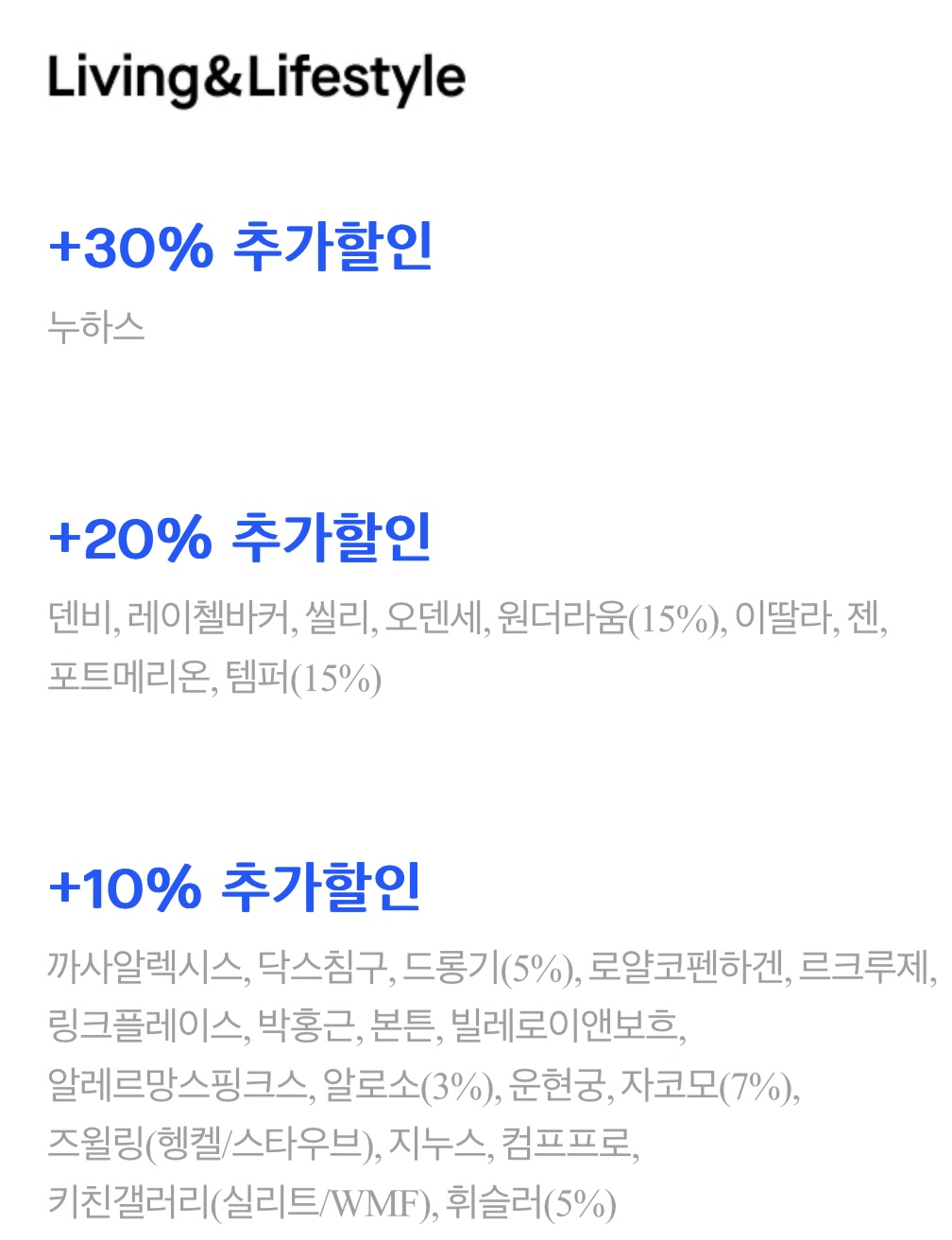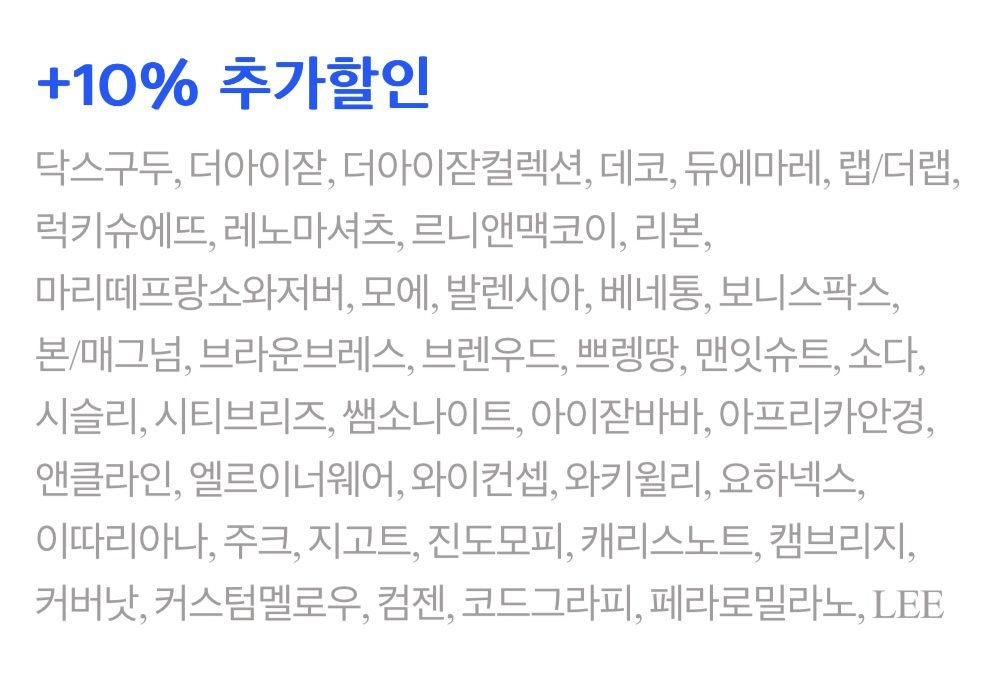 - 뉴발란스: 10만원/15만원 이상 구매 시 10%/20% 추가 할인 (5.30~6.8)