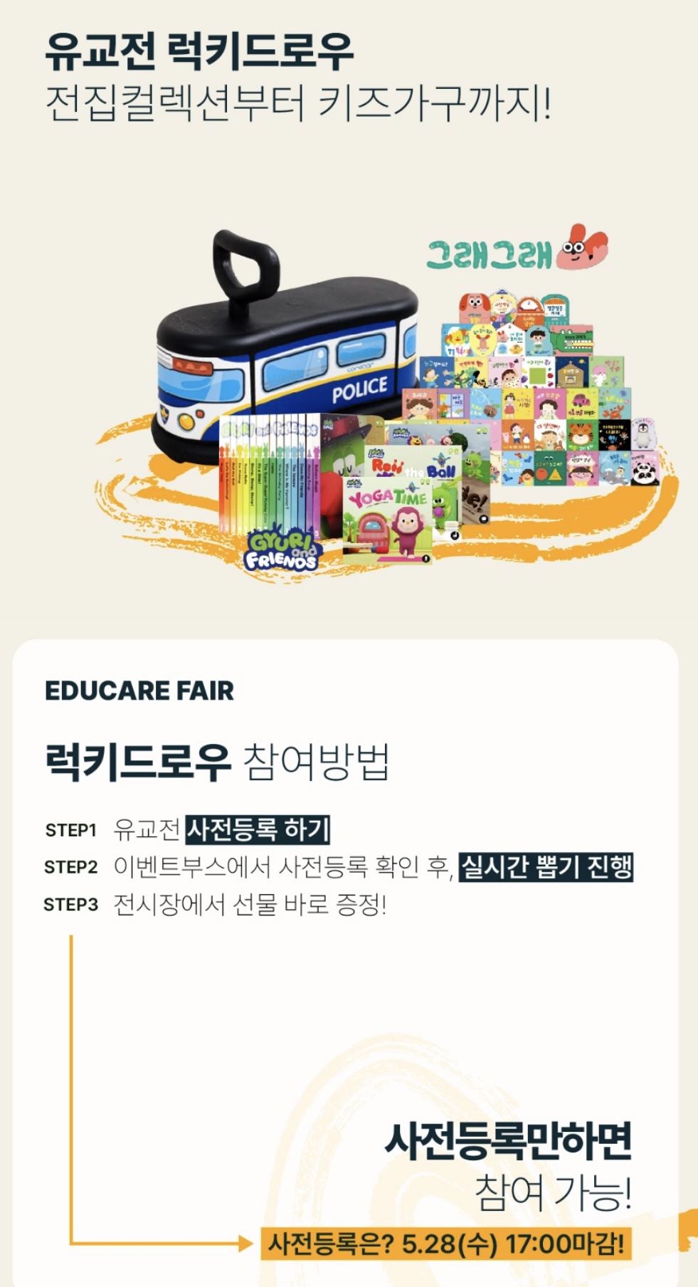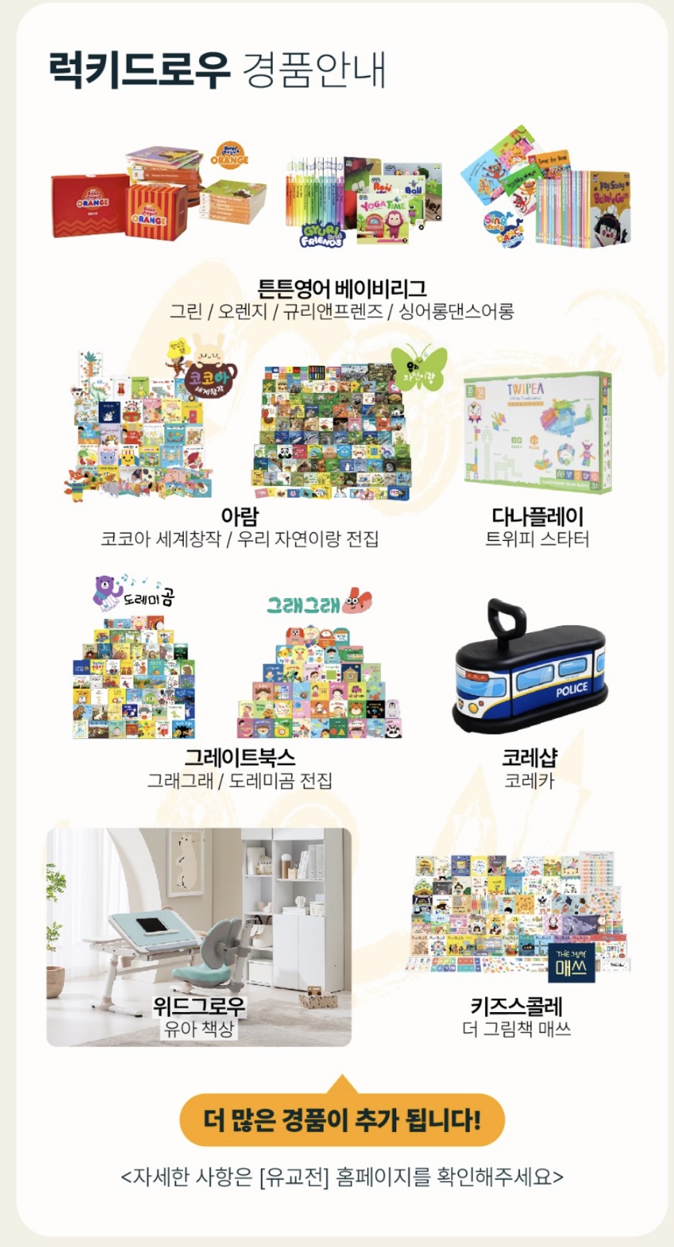 사전등록자 대상 현장 이벤트 럭키드로우에서는 다음과 같은 인기 육아용품들이 준비되어 있습니다.