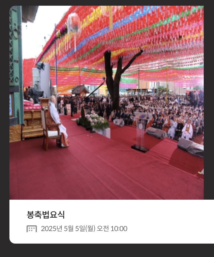 - 부처님 오신 날 법요식: 5월 5일 오전 10시, 조계사 및 전국 주요 사찰