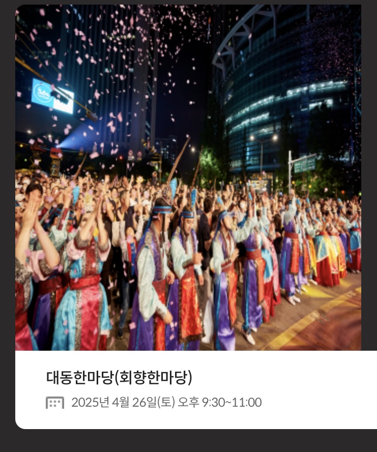 - 회향한마당: 4월 26일 (토) 오후 9시 30분~ 11시