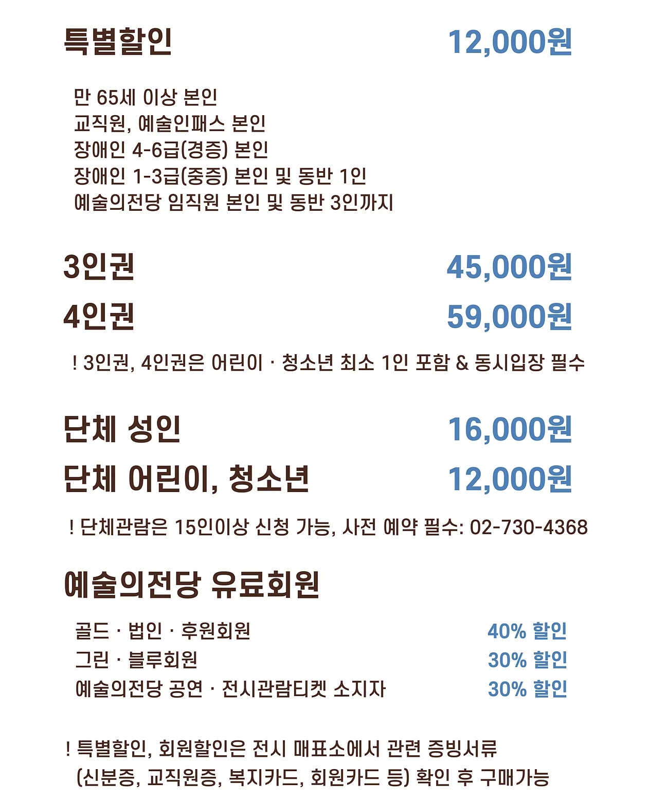 | 청소년/어린이 | 16,000원 | 12,000원 | 25% 할인 |