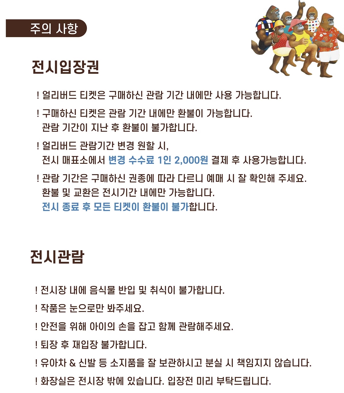 - 원화 전시: 윌리 시리즈, 고릴라, 동물원 등 대표작 100여 점의 원화