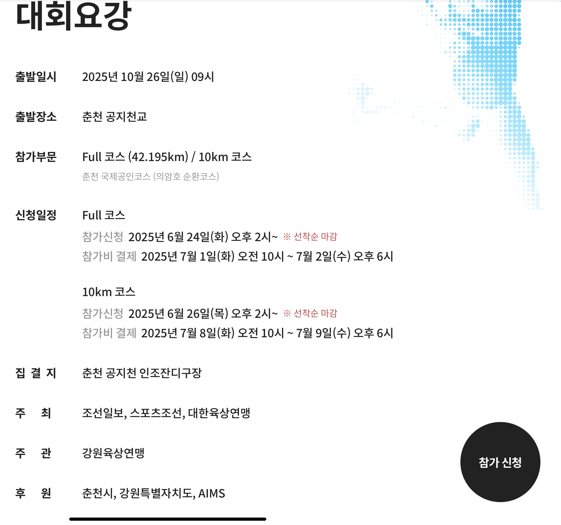 - 참가 종목 선택: 풀코스 또는 10km 코스 선택