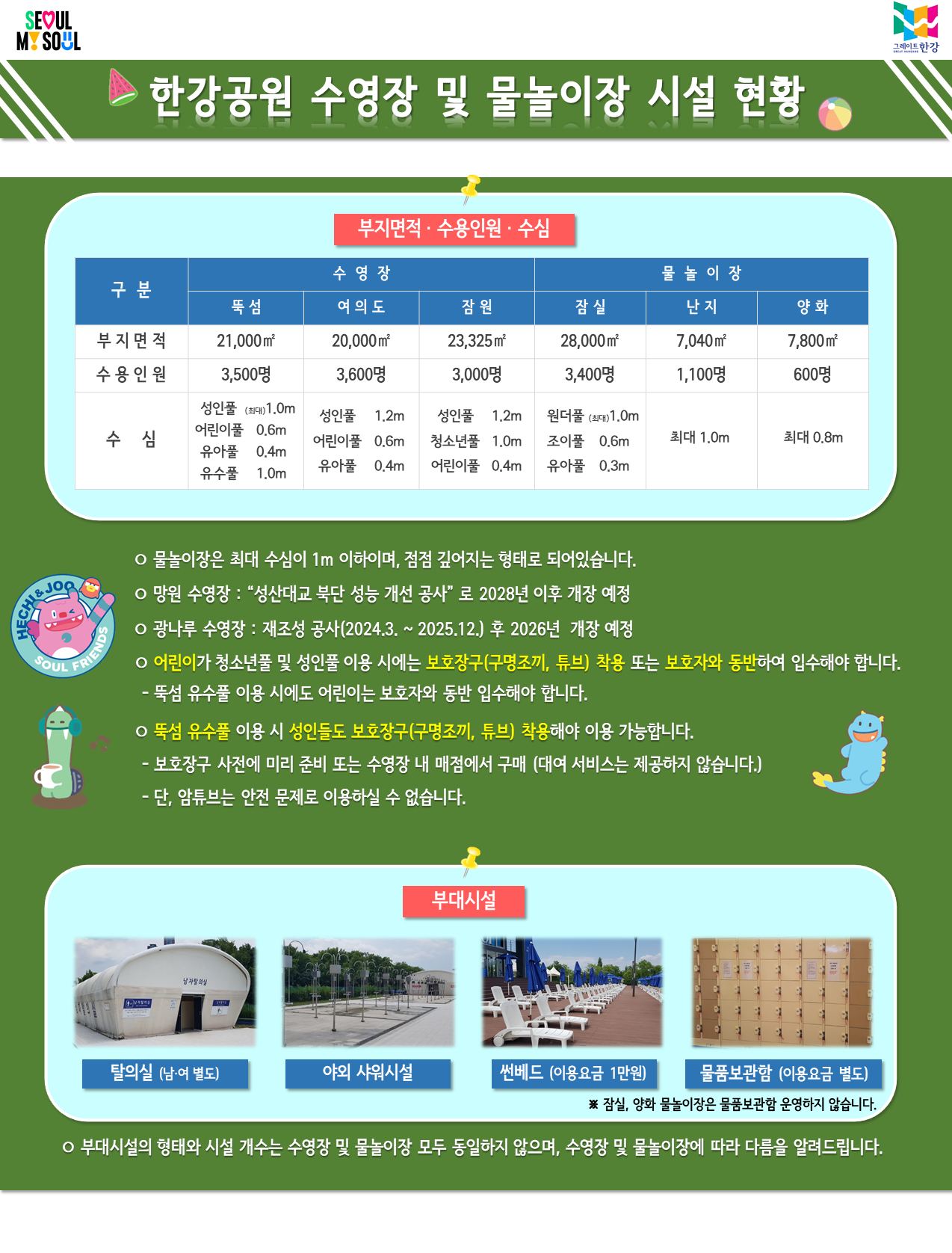 더 많은 한강공원 수영장/물놀이장 정보는 한강사업본부 공식 홈페이지에서 확인하실 수 있습니다.