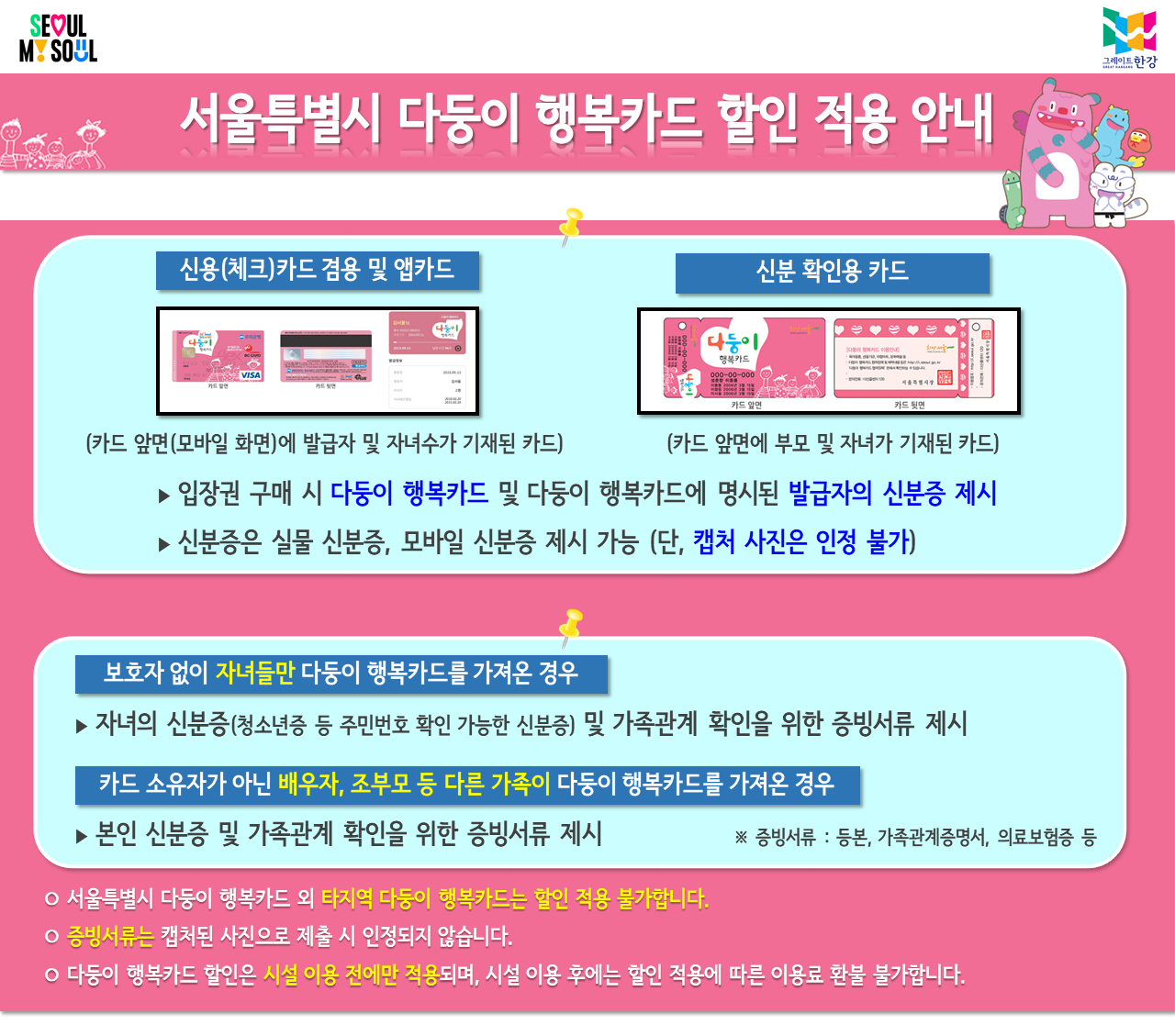 - 할인 대상자는 현장에서 증빙서류 지참 필수