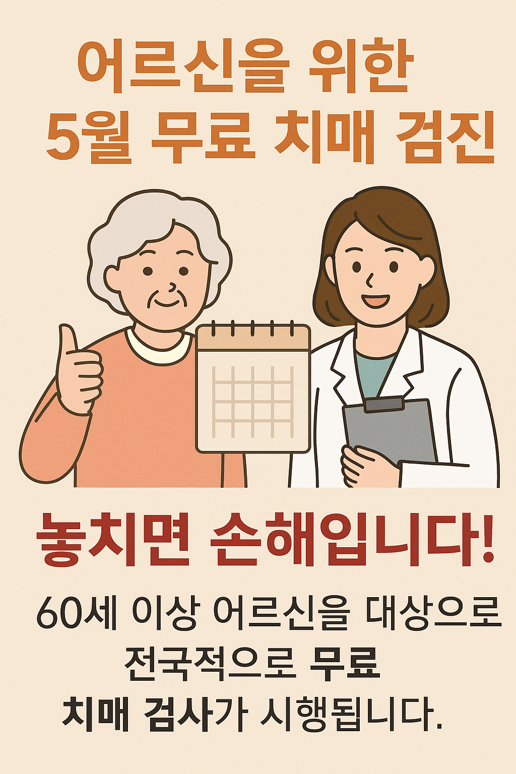 ✔️ 놓치면 1년을 더 기다려야 할 수도 있습니다. 치매 무료 검사, 지금 바로 예약하세요!