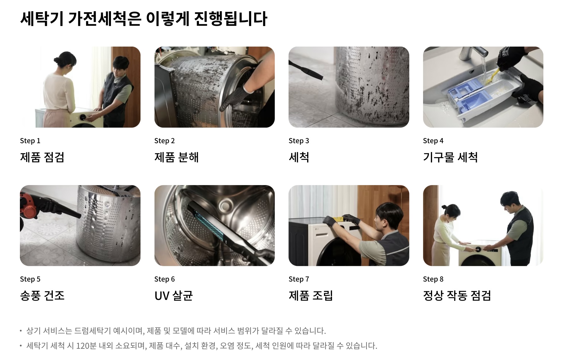 - 정품 부품과 세제 사용: LG전자에서 인증한 정품 부품과 친환경 세제 사용