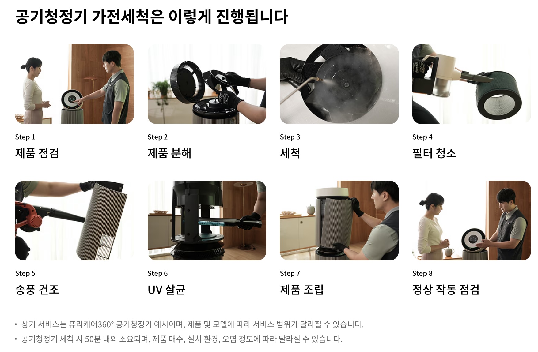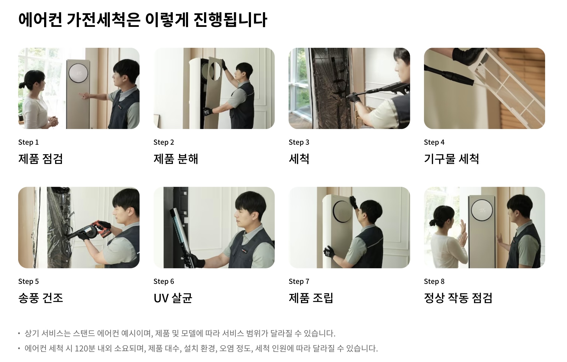 - 필터 세척, 열교환기 살균 세척, 팬 세척, 드레인 세척 등