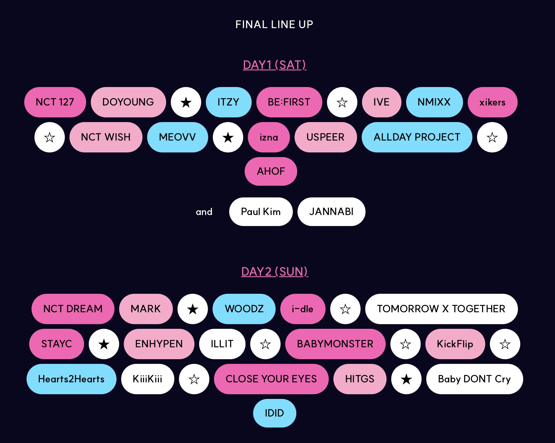 SBS 가요대전 Summer UNIPOP는 아직 전체 라인업을 공개하지 않았습니다. 앞으로 더 많은 톱 아티스트들이 추가될 예정이며, 매년 방송 직전까지 서프라이즈 게스트가 등장하는 것으로 유명합니다. 작년에는 블랙핑크, BTS 등 글로벌 스타들이 깜짝 출연하여 화제를 모았습니다.