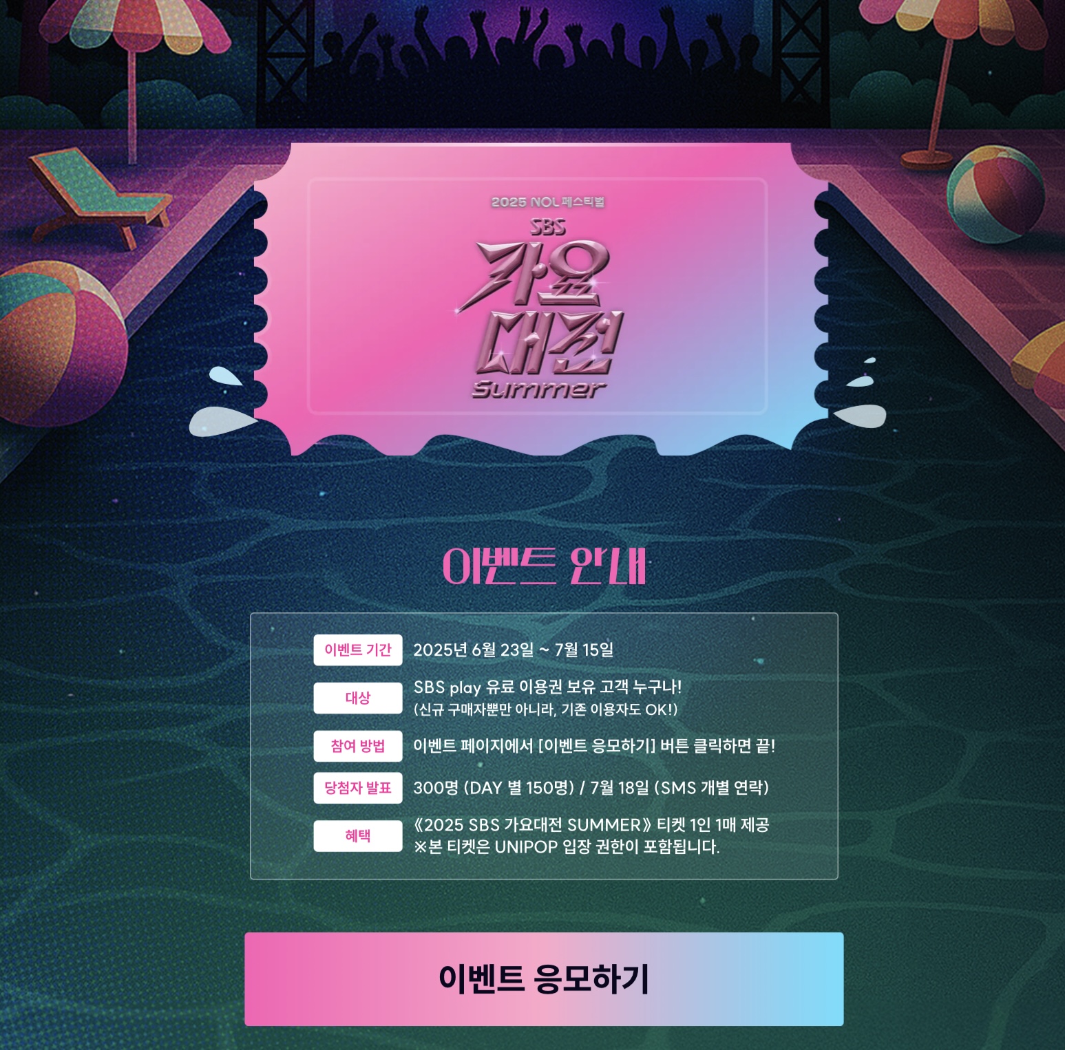 SBS 가요대전 Summer UNIPOP 방청권 신청 순서: